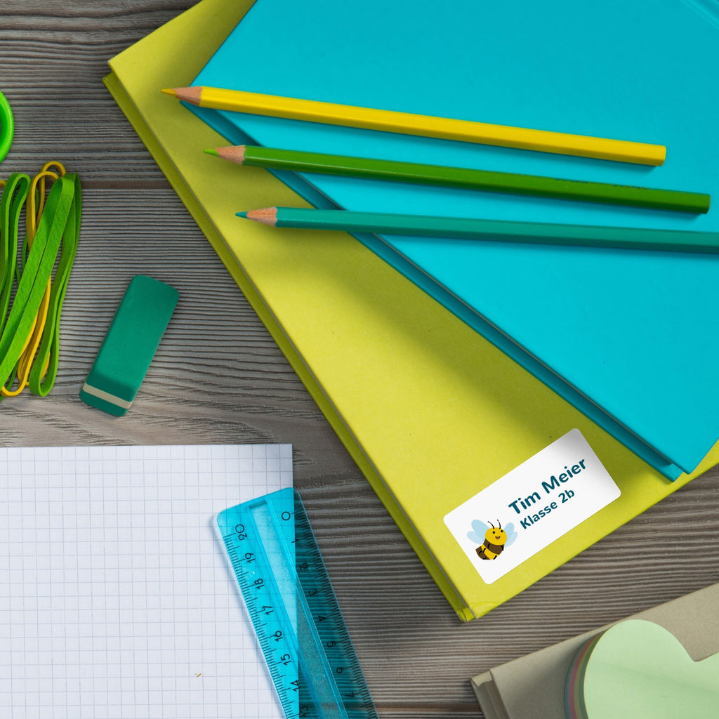 Sie helfen dabei, keine Verwechslungen mehr in der Schule, Kindergarten oder Krippe zu haben. Mit den Aufklebern können Schulhefte, Bücher, Trinkflaschen und andere Sachen – einfach und schnell markiert werden.