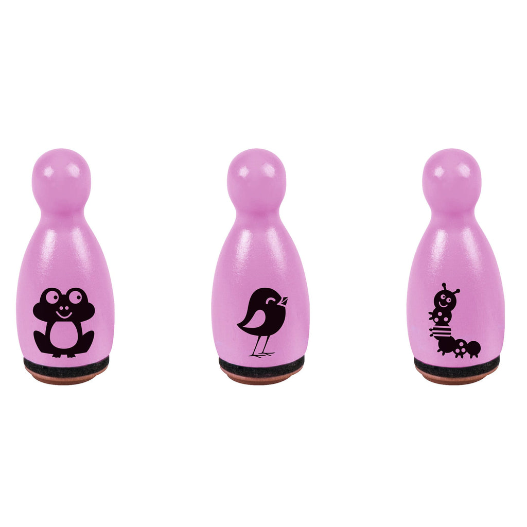 Avec cet ensemble joyeux de tampons en bois dans un violet éclatant, les enfants et les adultes peuvent laisser libre cours à leur créativité ! L'ensemble contient trois motifs animaux soigneusement conçus, parfaits pour des designs ludiques et inspirés par la nature :