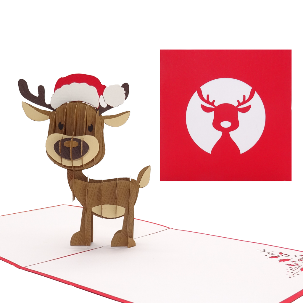 Lovingly designed pop-up card with 3D reindeer