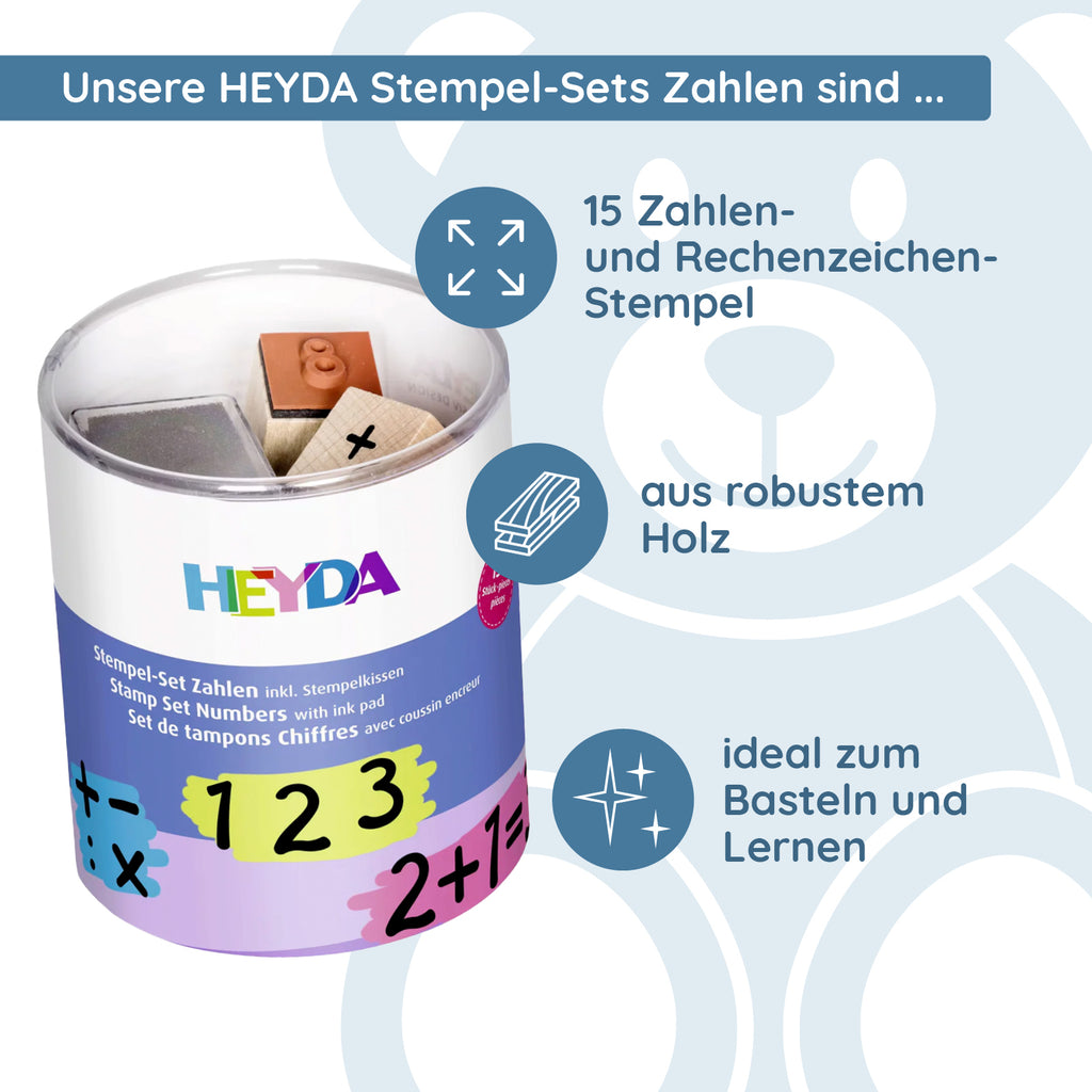 Each set contains carefully crafted wooden stamps with a handy size of 15 x 15 mm as well as a black stamp pad with quick-drying ink. The stamps are not only durable but also particularly easy to use, making them ideal for children and adults alike.