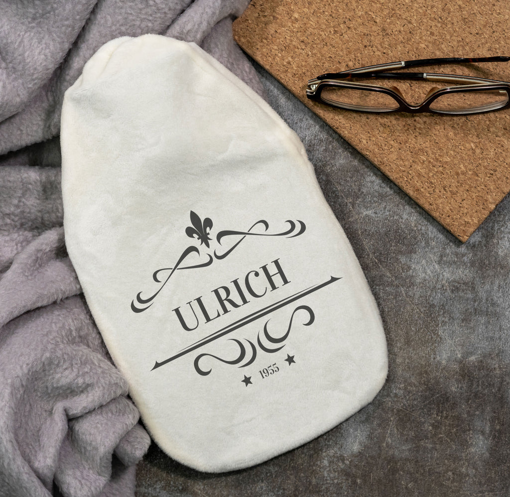 The set consists of a hot water bottle and a soft, cuddly cover that can be printed on.