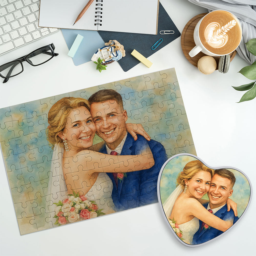 🧩 Customizable Puzzle – Watercolor drawing created from your uploaded photo
